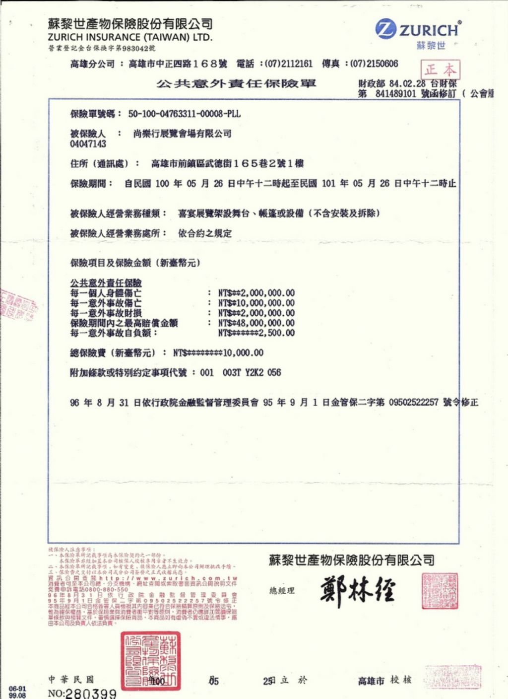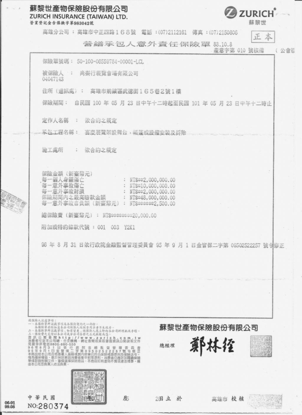 PS:颱風期間保險公司所有理賠均依法不予以理賠。 |